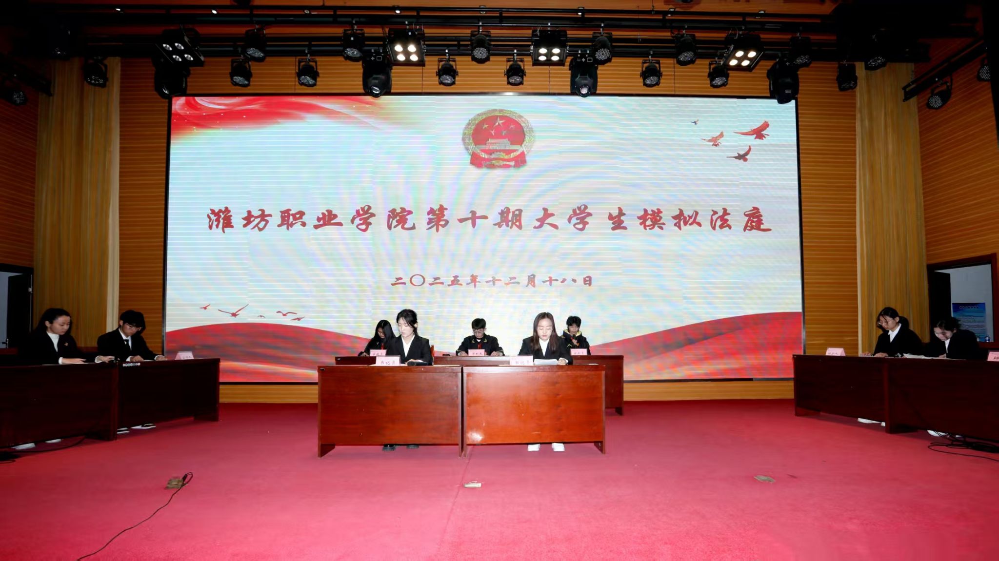 为深入学习贯彻习近平法治思想,落实法治宣传教育第八个五年规划,12月18日下午,学院在滨海校区图书馆报告厅举行第十期大学生模拟法庭,奎文校区视频连线设分会场。宣传部、马克思主义学院负责同志及二级学院师生代表、青年法学社学生代表500余人参与活动。